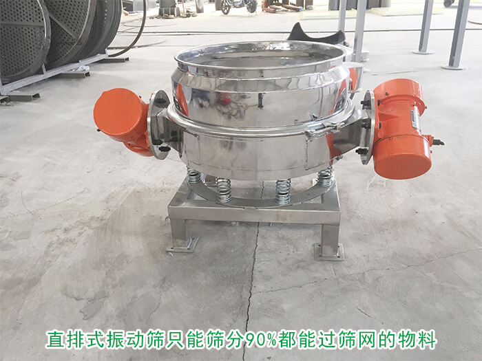 直排式振動篩:一般裝配有一臺到兩臺臥式振動電機,分單振源和雙振源兩種,單振源作用到物料上主要產(chǎn)生上下振動,不具備自動排料功能,雙振源能在篩面上產(chǎn)生渦旋運動,具有自動排料功能,是以振動電機為激振源,在電機的帶動下物料在篩框上做橢圓運動,快速并往復的實現(xiàn)物料過網(wǎng)動作。