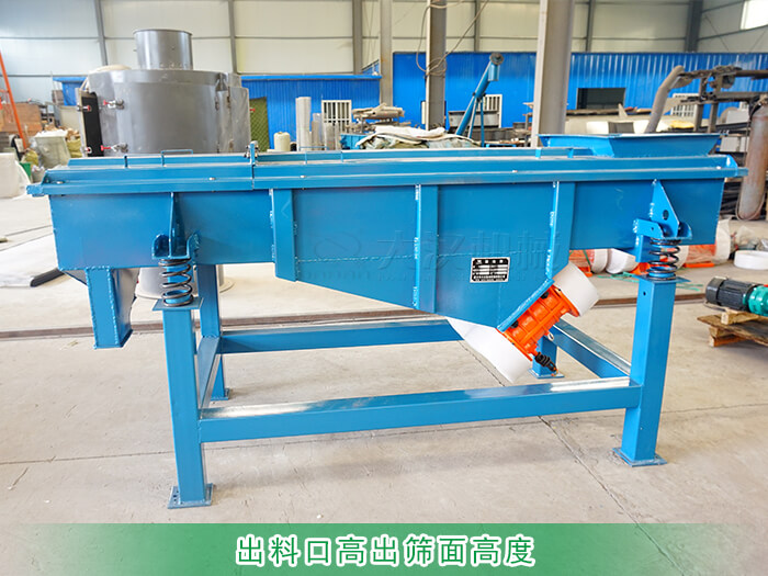 在設(shè)計(jì)直線篩時(shí)如果出料口高于篩面在生產(chǎn)過程中就會(huì)出現(xiàn)物料停滯在篩面不下料的問題。