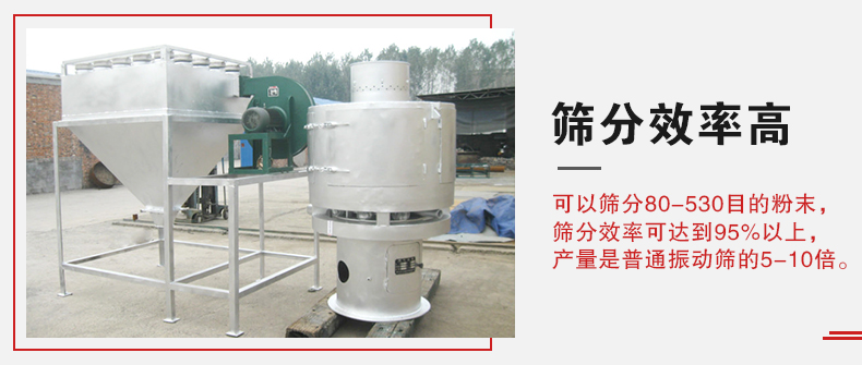 1、可以篩分80-530目的粉末,篩分效率可達到95%以上,產(chǎn)量是普通振動篩的5-10倍或更高;