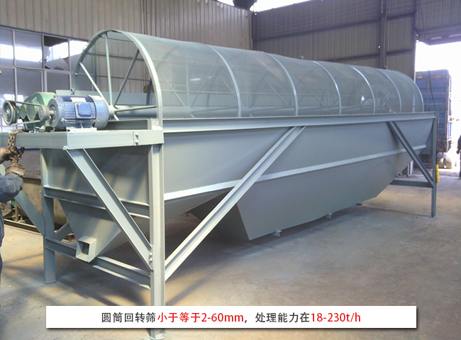 圓筒回轉篩小于等于2-60mm,處理能力在18-230t/h